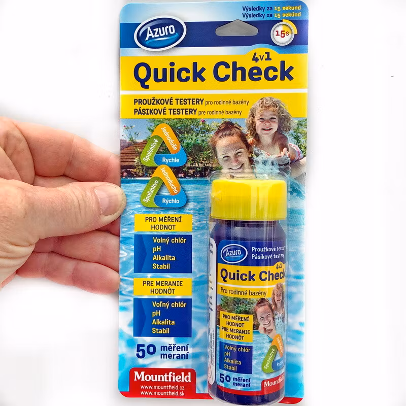 Quick Check - Teststickor för fritt klor, pH och total alkalinitet samt cyanursyra (stabilisator). 50st i en burk. Även till dig som använder saltklorinator.